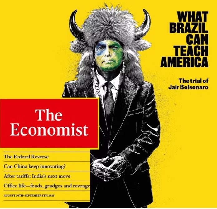 Além das medidas tomadas contra o Brasil em defesa de Bolsonaro, como a imposição de tarifas de 50% sobre produtos brasileiros e a aplicação da Lei Magnitsky contra o ministro Alexandre de Moraes, a “The Economist” destaca, por exemplo, a tentativa de interferência no Fed e as ameaças a cidades controladas por adversários democratas.